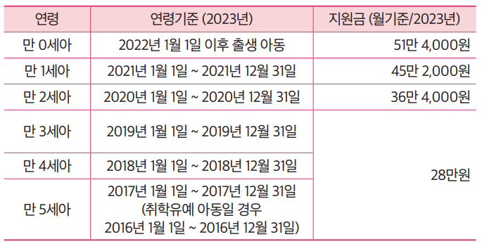 0~5세 아동 양육 가정에 지급되는 보육료는