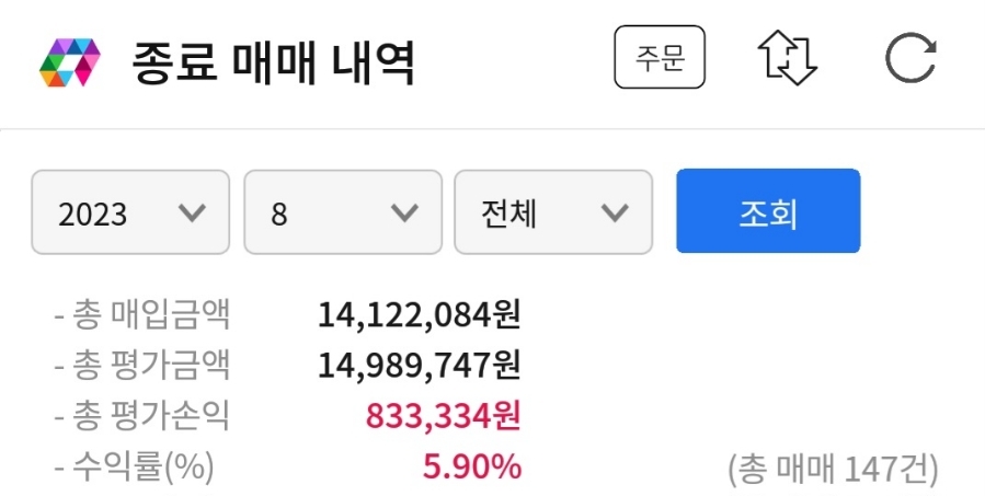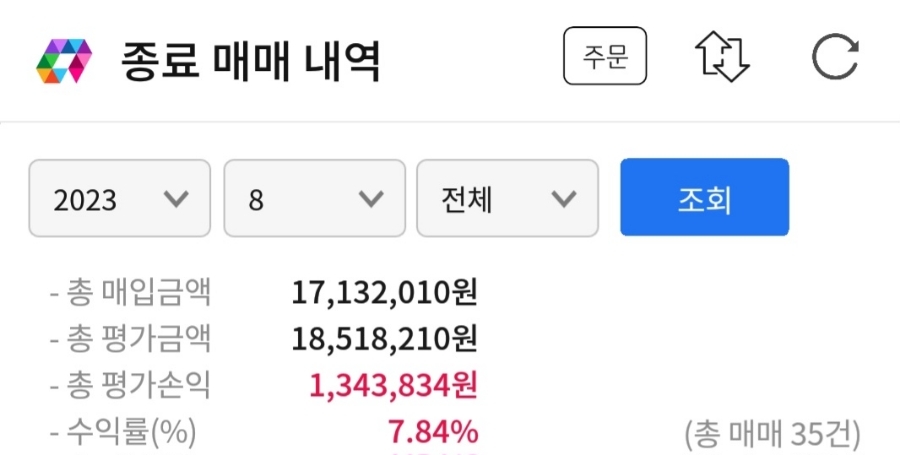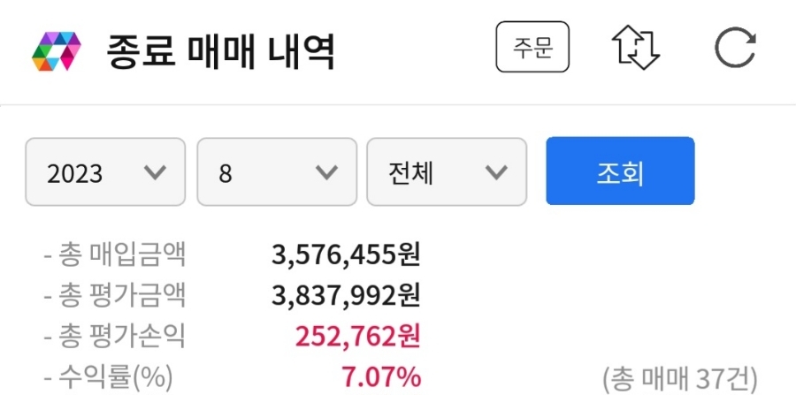 이제 실현 이익 금액이 손실 금액을 앞서기 시작했습니다. ^^'