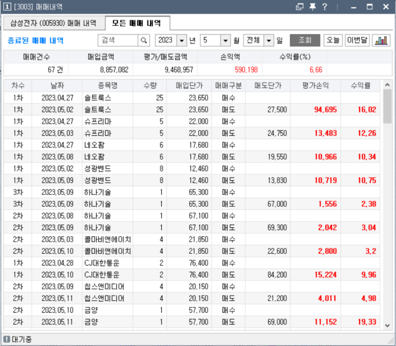 '내가 사면 내리고, 팔면 오르는...' 똥손이 제법 수익을 내었습니다. ^^;