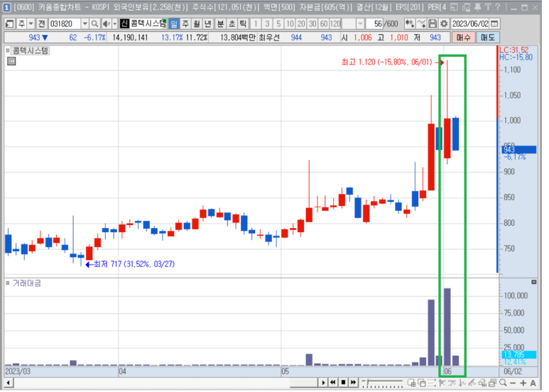 두올, 한국전자금융, 콤텍시스템은 어제 (6월 1일) 의 종목 중 선정 조건에 부합한 아이들입니다.