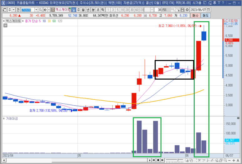 엑스게이트, 이수페타시스는 월요일 (6월5일) 의 종목 중 선정 조건에 부합한 아이들입니다.