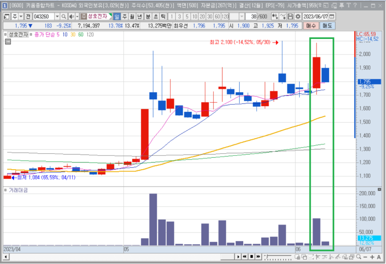 성호전자, 어반리튬은 전고점을 돌파하지는 못했으나, 매수세가 들어온 것으로 판단하여 포함했습니다.